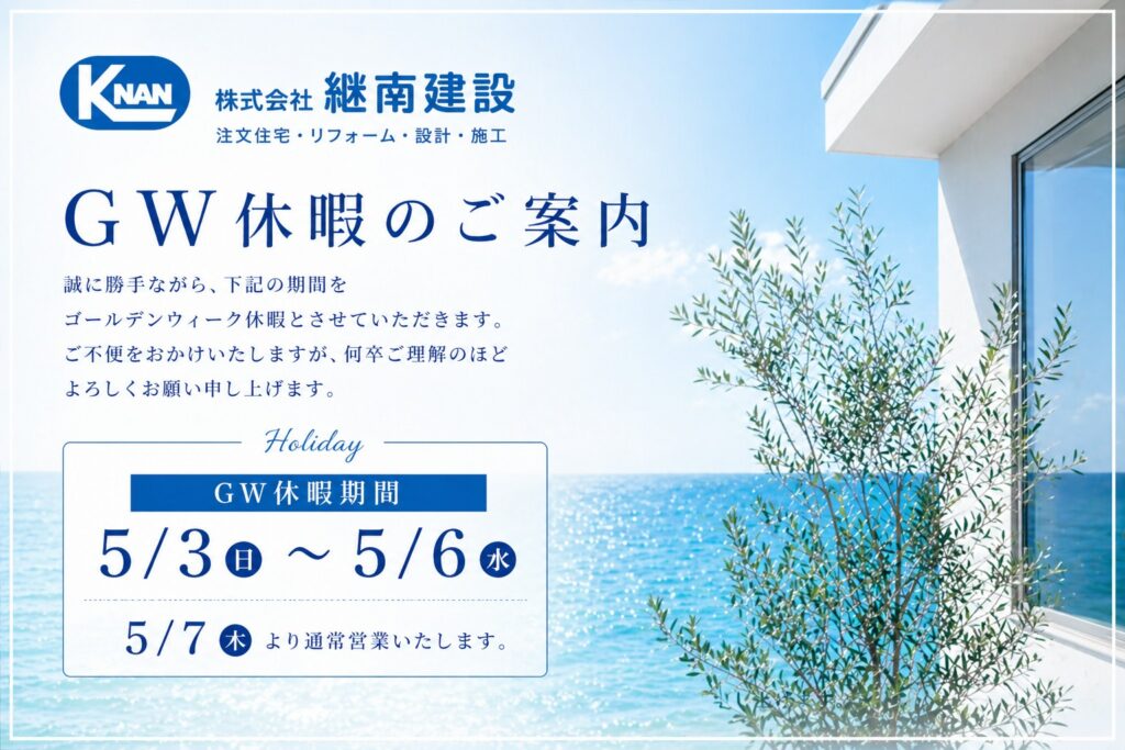 ゴールデンウィークに伴い、2026年5月3日(日)から2026年5月6日(水)まで