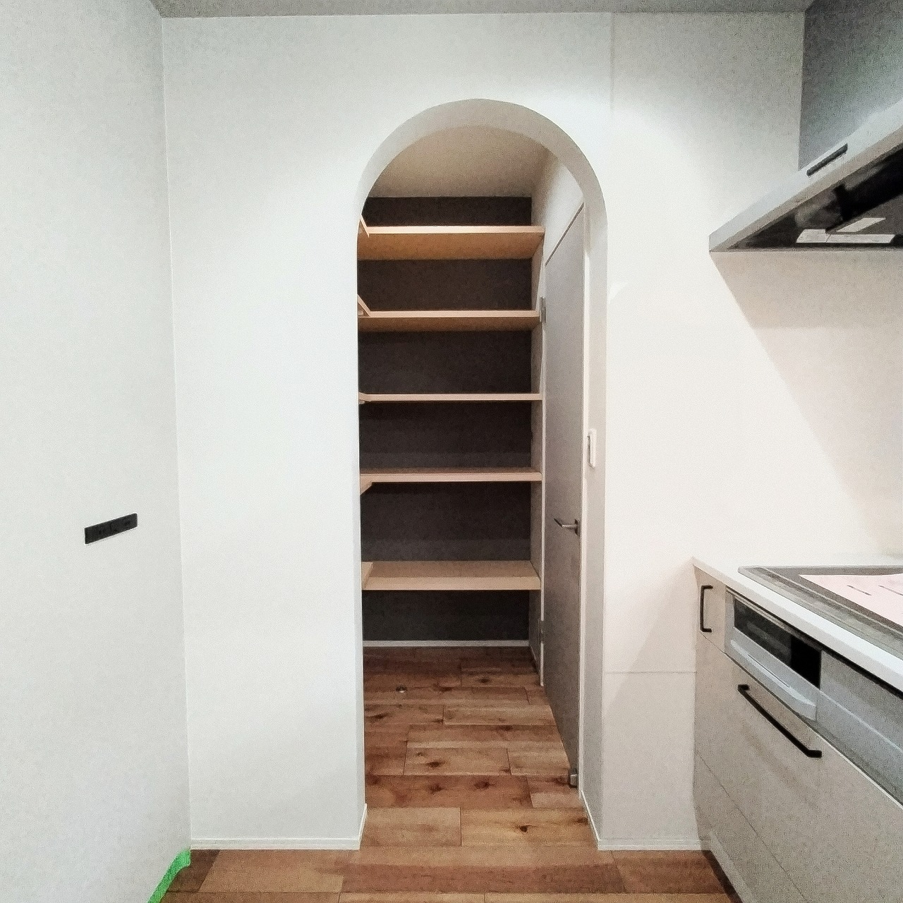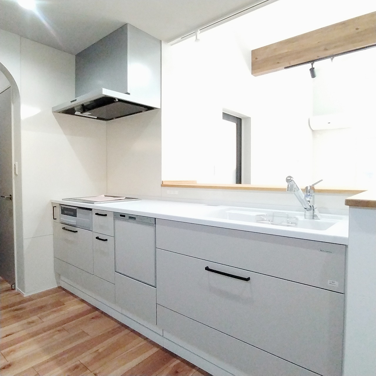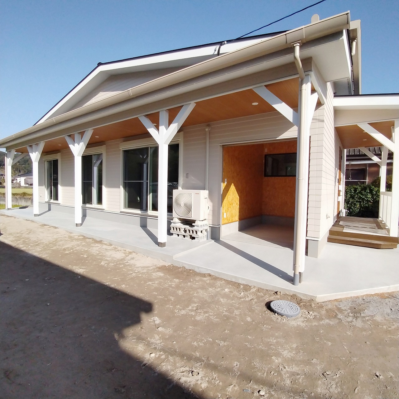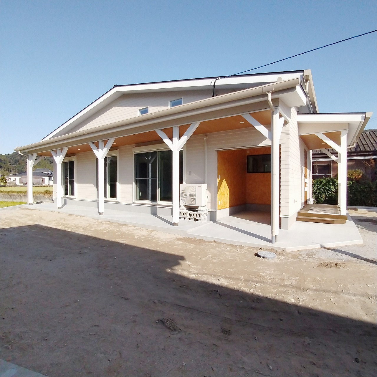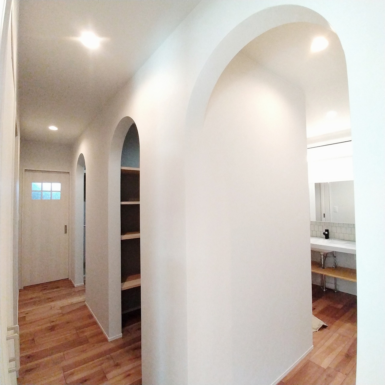 外観が爽やかなカリフォルニアスタイルのお家です。 玄関に入ると、ガレージ、パントリーとそれぞれに繋がっていて、 家事動線や趣味を楽しむ工夫があります。 吹き抜けで気持ちの良いリビング。 R壁を取り入れたり、ニッチを設けたり、ナチュラルな中に可愛さがあります。 収納もたっぷりでお部屋もすっきりすることでしょう。